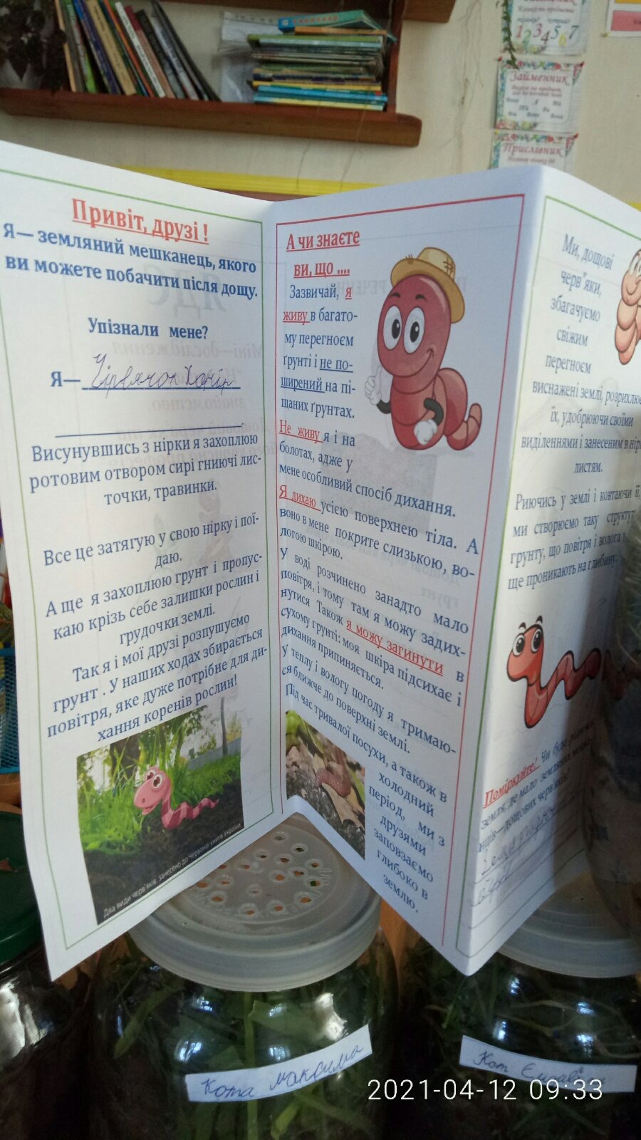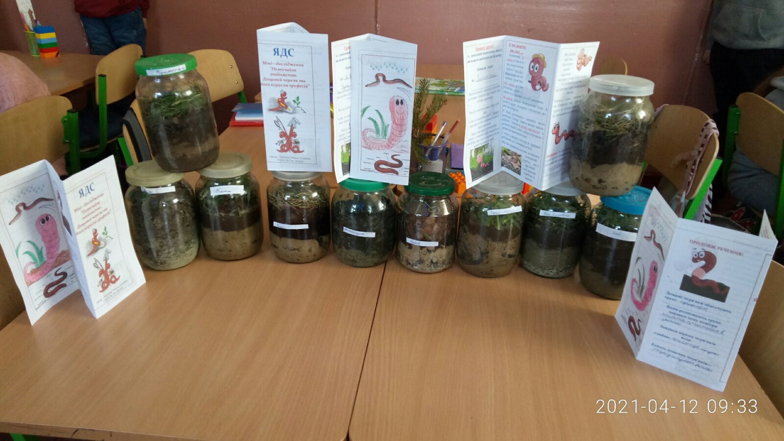 Для того, щоб можна було спостерігати, яку користь вони приносять грунту, ми створили міні-екосистеми, де і поселили своїх вихованців. Через деякий час, коли дослідження буде завершене, черв'ячки перейдуть жити до шкільного саду.