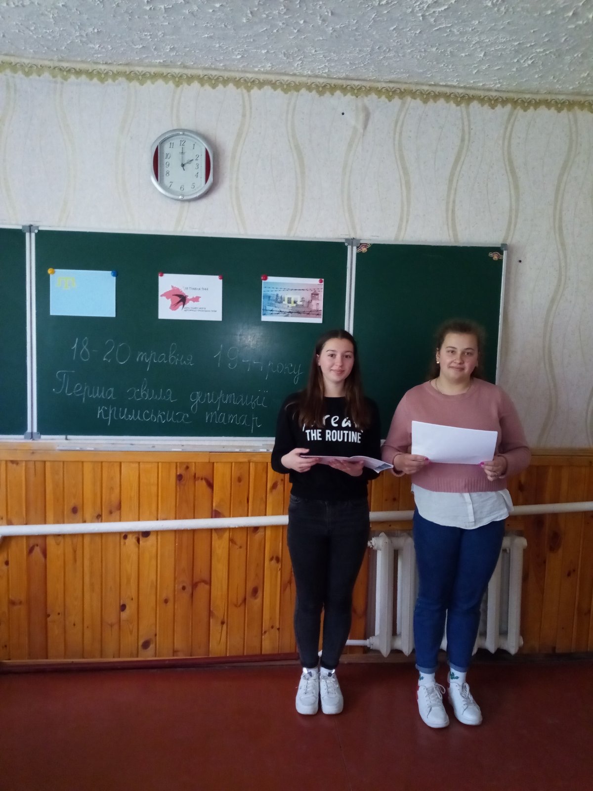 Про важку долю депортованих у 1944 році кримських татар, про видатних киримли говорили сьогодні учні 10 класу.