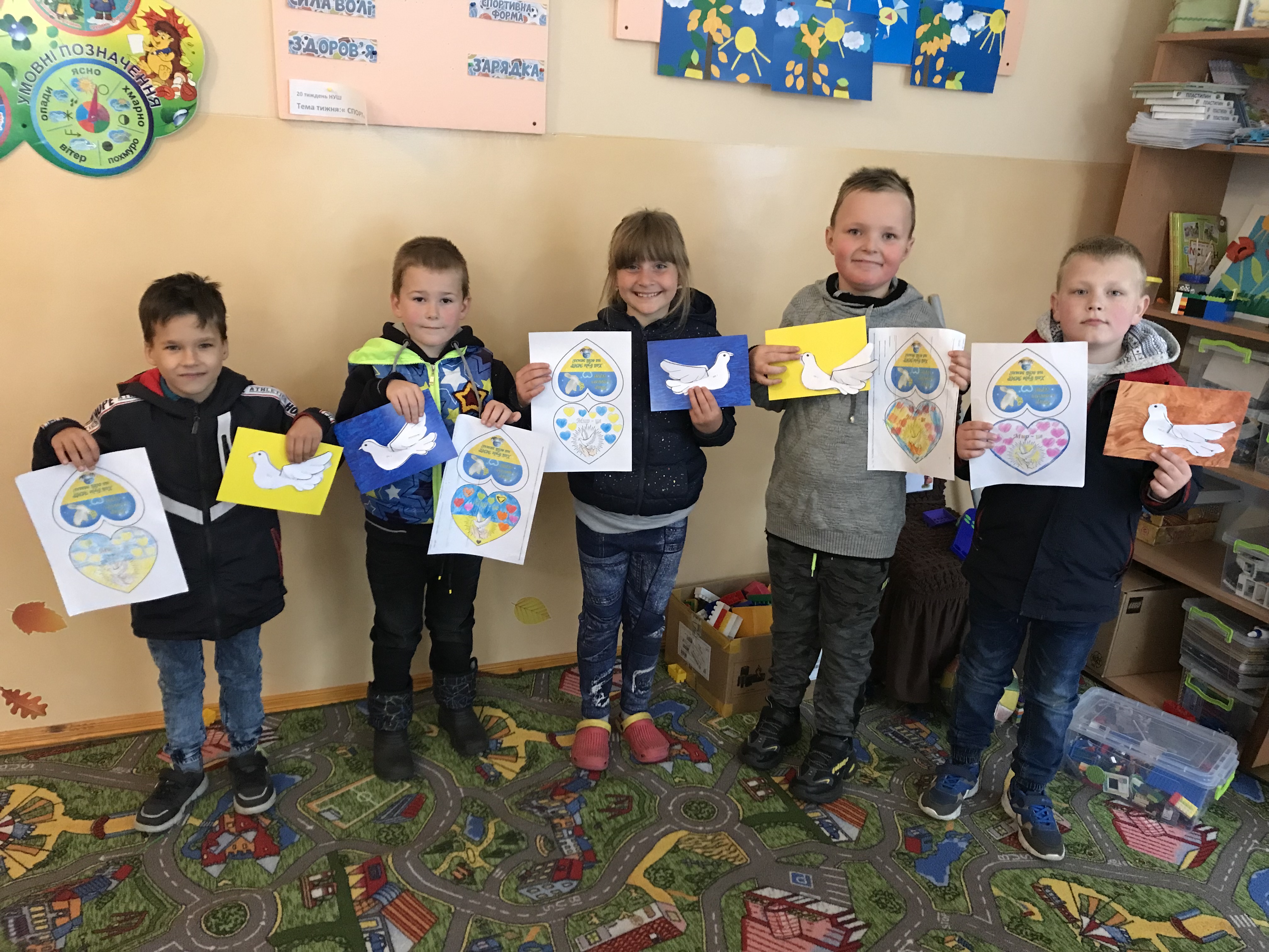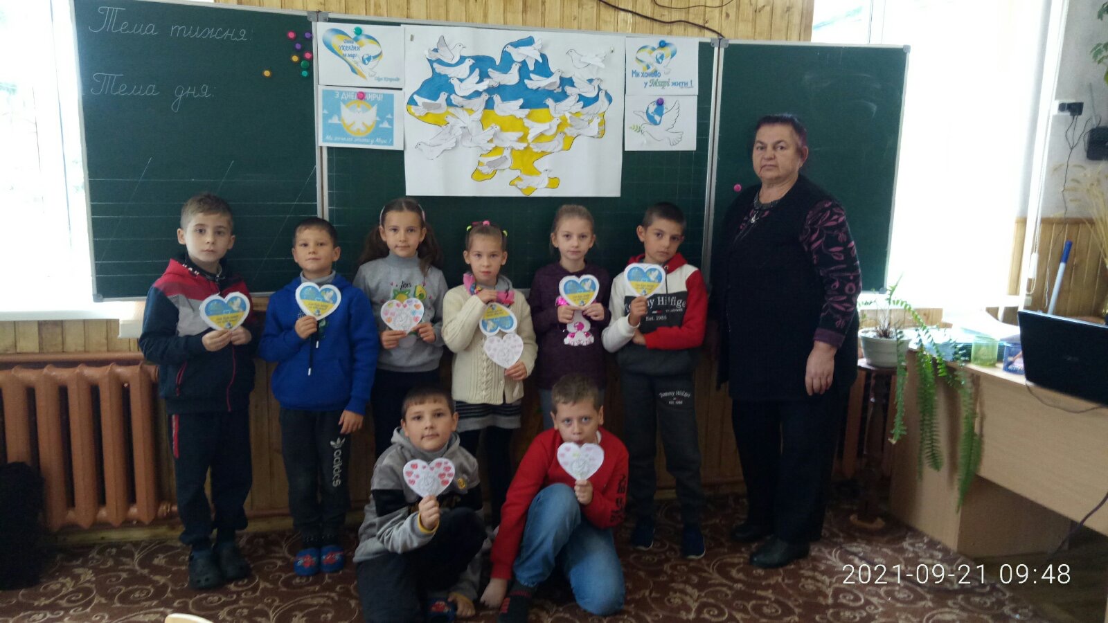 Також виховна година пройшла у другому класі. Здобувачі освіти також виготовили голуба та розмалювали сердце, в патріотичних кольорах.