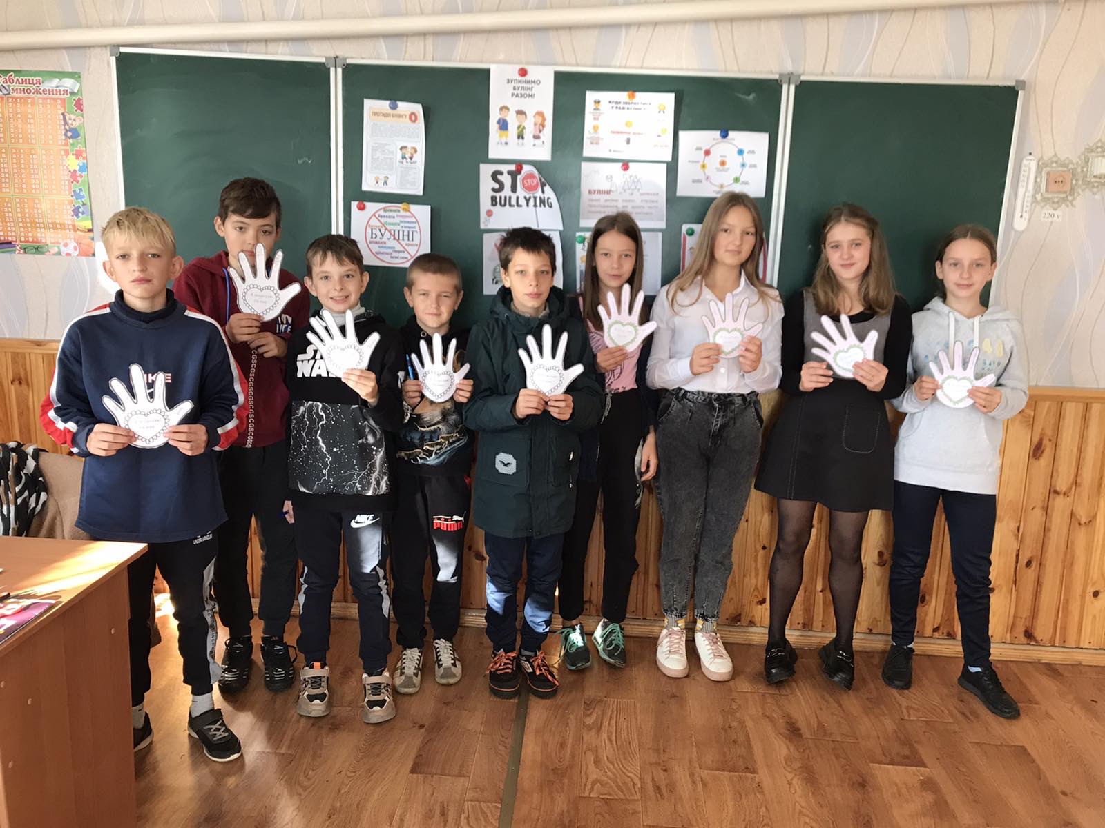 Класні колективи середньої та старшої ланки були залучені до виготовлення творчих робіт – підсумків: долоньки - "Я подолаю булінг!".