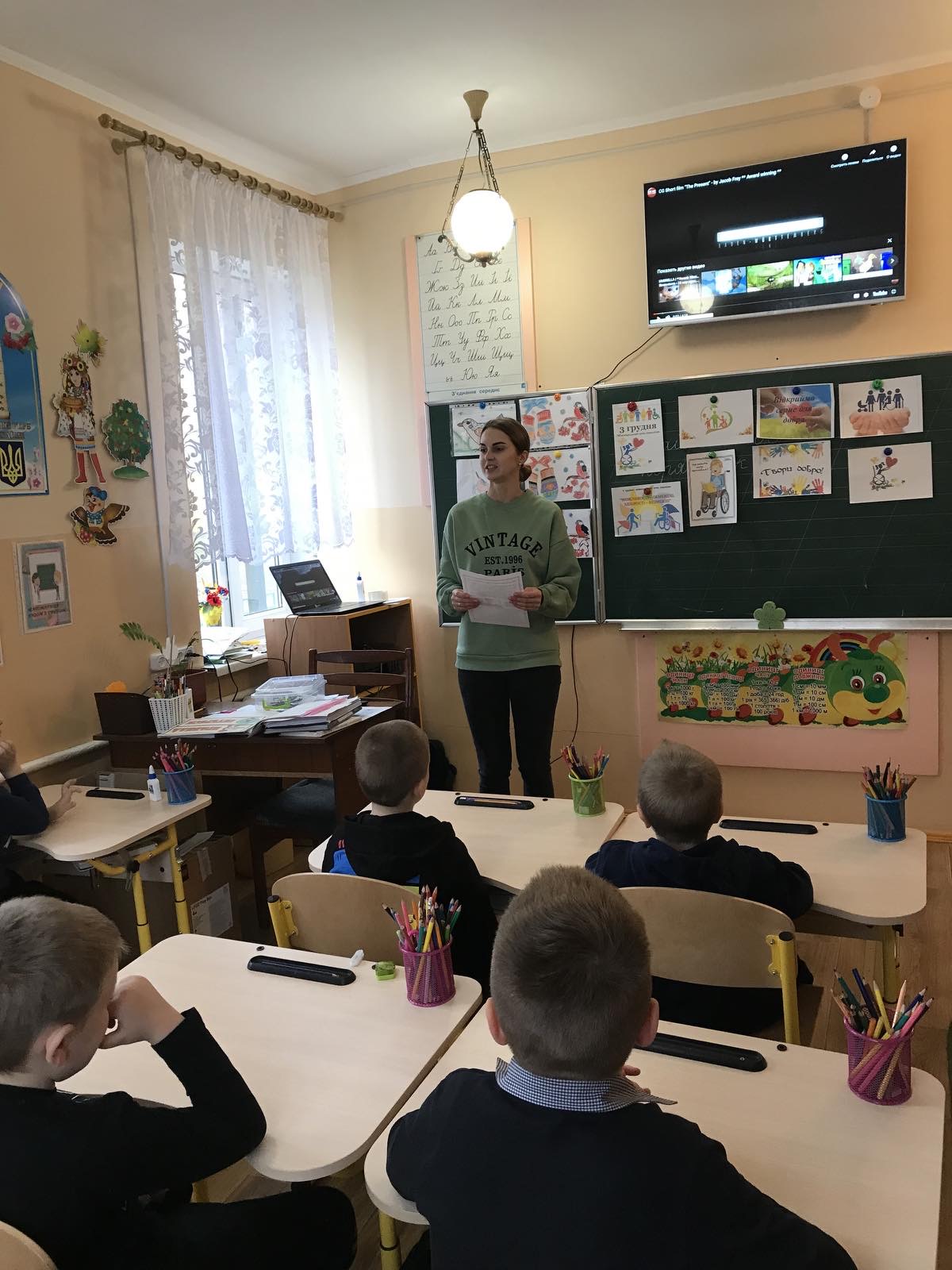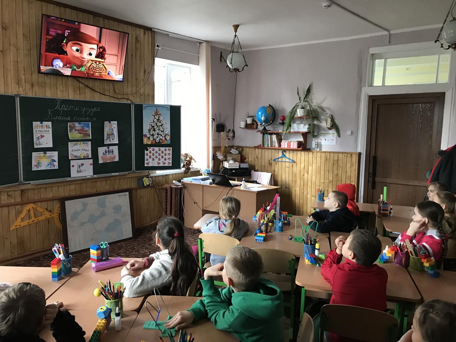 У молодших школярів, була можливість дізнатися про таких дітей, які потребують підтримки та взаєморозуміння з боку своїх друзів, вони переглянули короткометражні відеоролики, стосовно теми інвалідності,разом з психологом Павленко Д.М., потім ділилися враженнями, своїми емоціями та обговорювати хто які зробив висновки з переглянутого. На завершення учні на паперових сердечках записали позитивні побажання діткам, які мають особливі потреби.