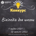 Із 1 грудня 2021 до 28 лютого 2022 року в українській Вікіпедії пройде щорічний конкурс статей «Вікіпедія для школи». ГО «Вікімедіа Україна» запрошує до участі шкільних вчителів, університетських викладачів та всіх охочих.