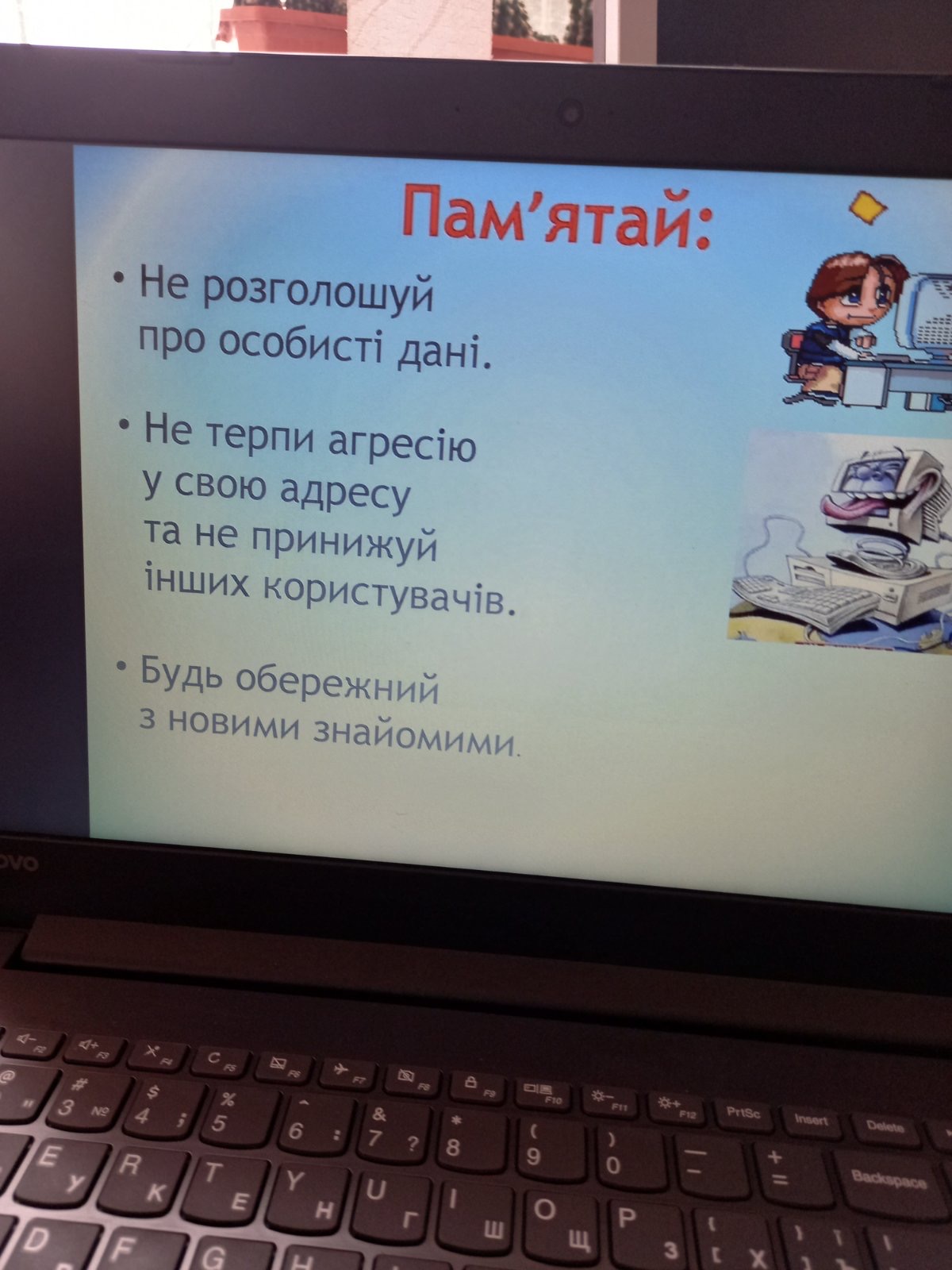 Молодші школярі подивилися мультфільми про безпечне користування Інтернетом: «Нові корисні підказки. Увага! Інтернет!», «Безпечний Інтернет. Найжахливіший тиждень Петрика», дізналися більше про Інтернет-культуру, пригадати правила Інтернет спілкування та дали обіцянки їх дотримуватись, а також познайомилися з цікавими, а головне, безпечними Інтернет-ресурсами.. Після перегляду діти відповідали на поставлені запитання, розповідали цікаві історії, пов’язані з використанням Інтернету.