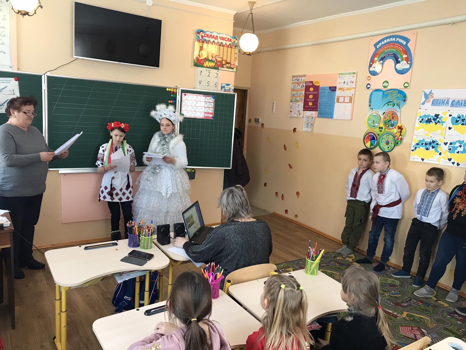 Учні другого класу декламували пісні, співали пісні, з ведучими свята "Зимою" та "Весною".