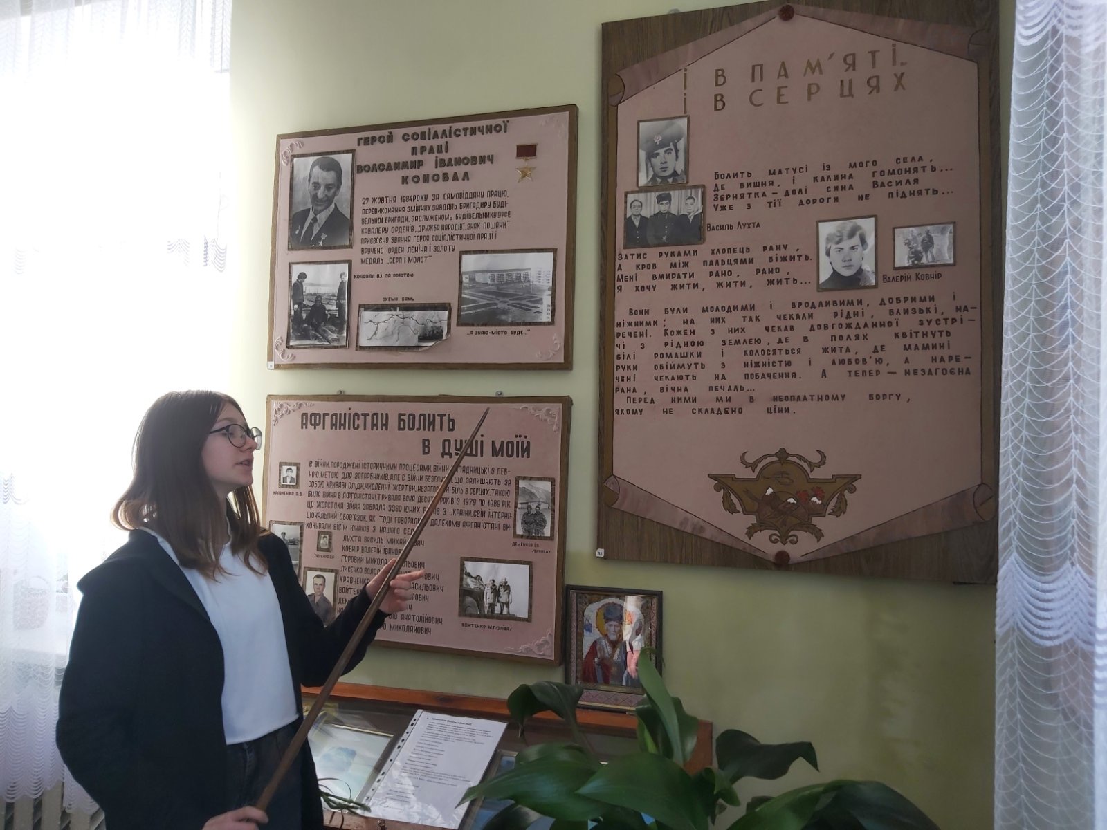 У шкільному історико-краєзнавчому музеї для учнів 8-х класів було проведено вчителем історії Шевченко Г. О., виховну годину  «Вони захищали ідеали демократії, права і свободи людини та європейське майбутнє».