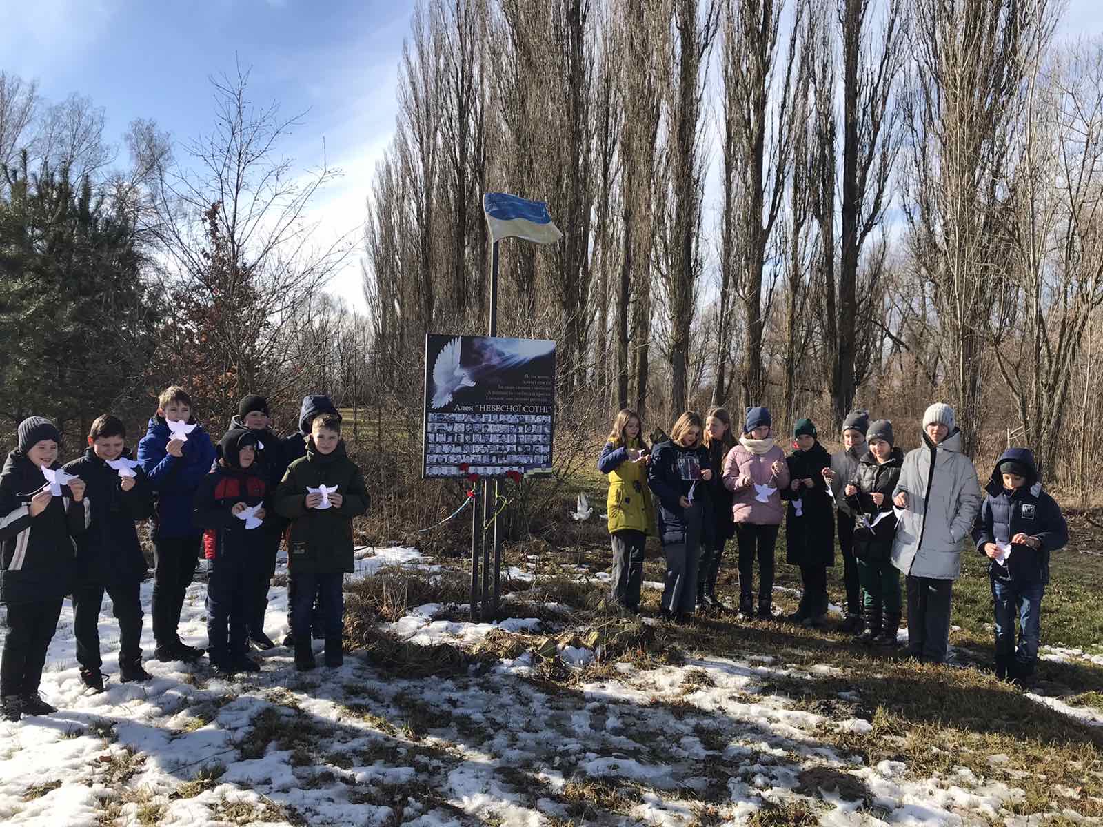Здобувачі освіти  вшанували Ангелів небес хвилиною мовчання, подякували Героям за їхню мужність та відвагу, обговорили трагічні події на Майдані, поділилися своїми враженнями та думками. Потім вирізали ангелів з паперу та повісили біля алеї "Небесної Сотні", на знак пам'яті про героїв.