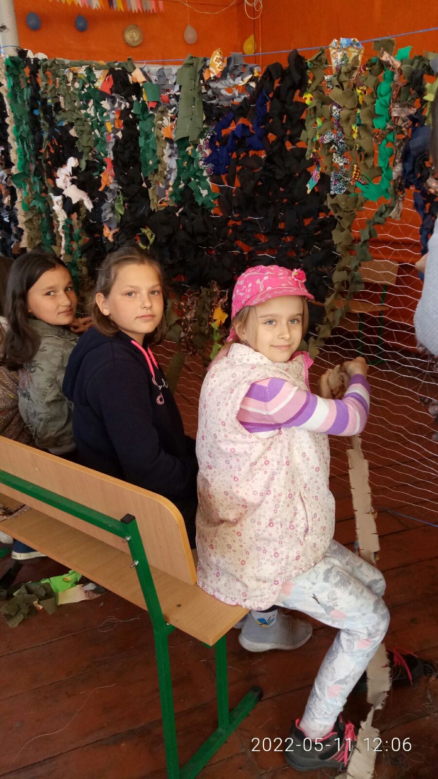Батьки та небайдужі жителі села приносили тканину та активно долучились до колективного плетіння захисної сітки.
