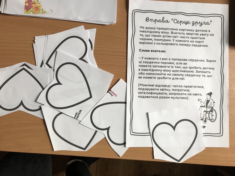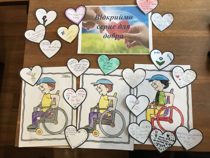 Також, здобувачі освіти переглянули відеоролики та виготовили паперові сердечка з побажаннями дітям з обмеженими можливостями.