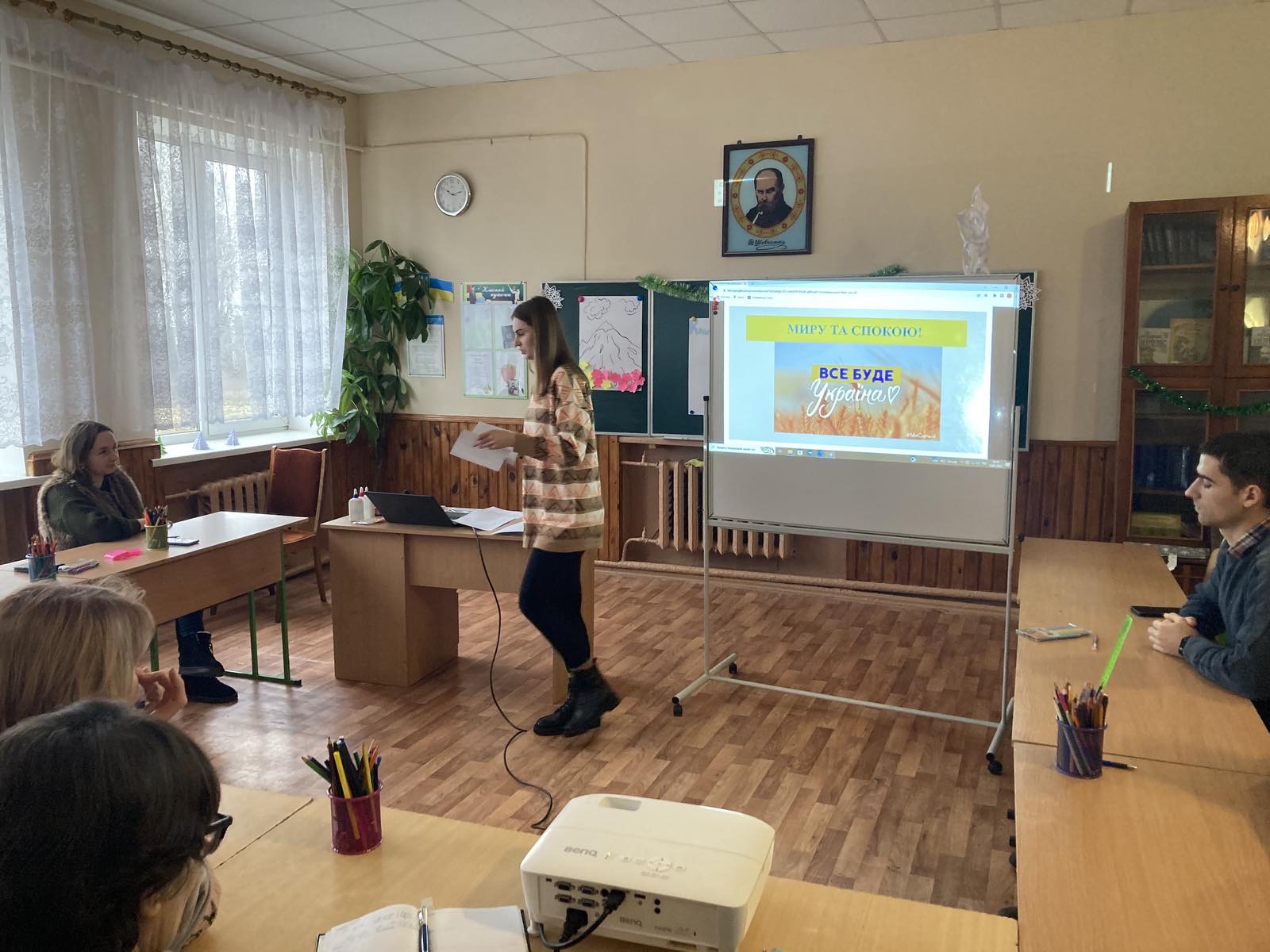 Переглянули презентацію: «Перша психологічна допомога в умовах воєнних дій». Послухали інформаційне повідомлення: «Стрес та його джерела».
