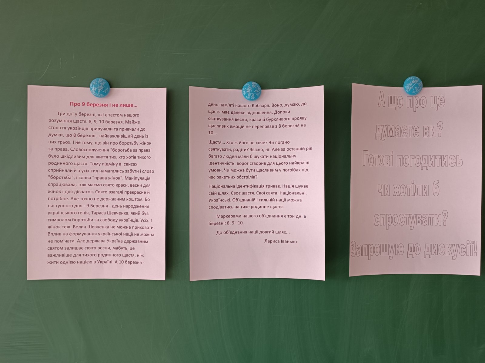 Саме цим дописом Л.Іванько запросила старшокласників до дискусії про національну ідентичність, роль Тараса Шевченка в ідентифікації та про зв'язок свят з поняттям щастя.