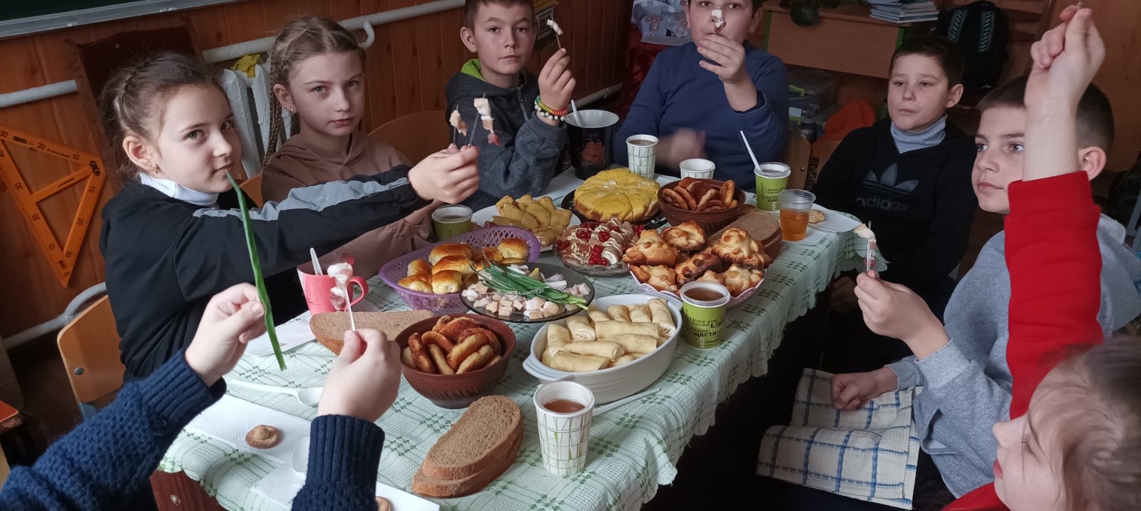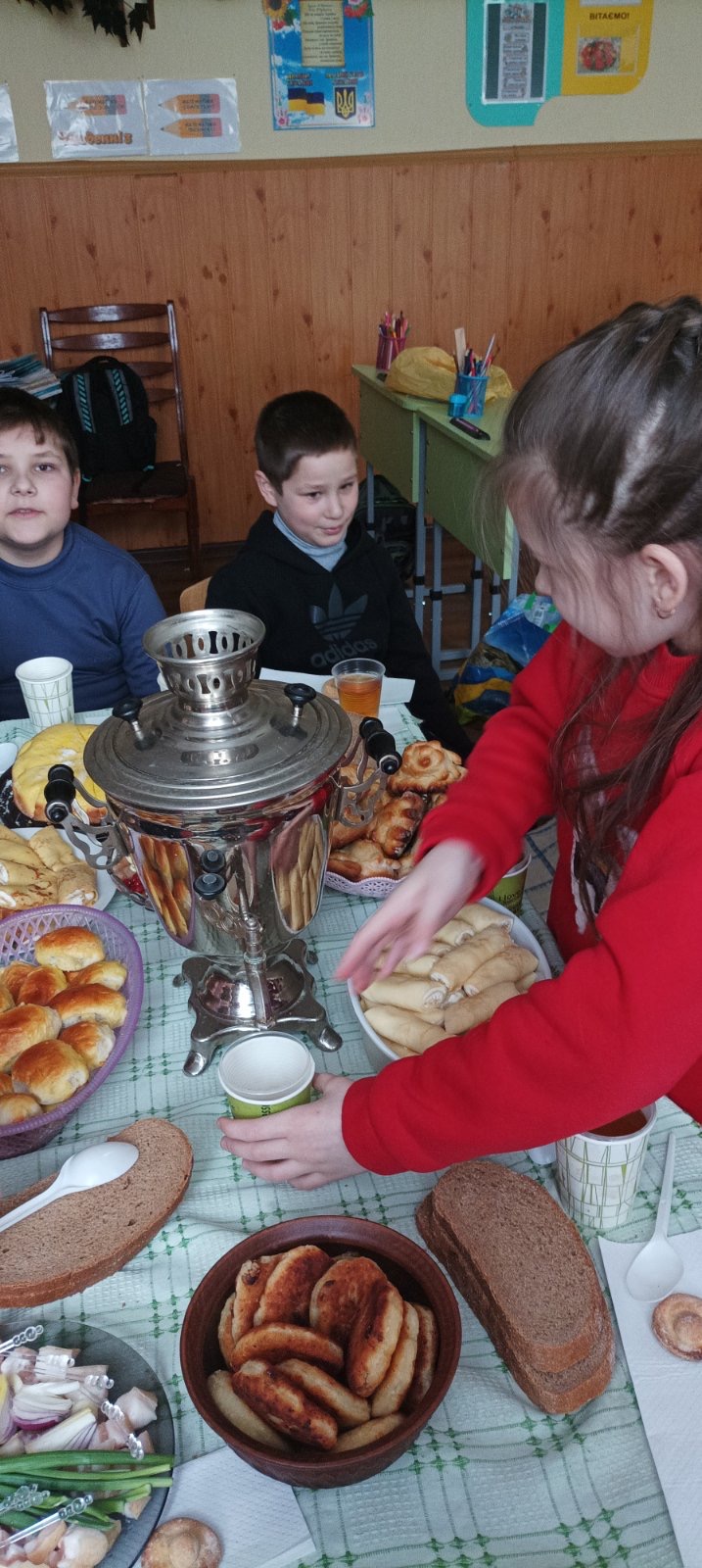 Разом з дорослими діти приготували свої улюблені страви, гарно оформили їх. Самі сервірували стіл і влаштували у класі фестиваль національної кухні. Головний атрибут сьогоднішнього уроку - це самовар! Дітям було цікаво та весело пити чай, у такий незвичний спосіб.