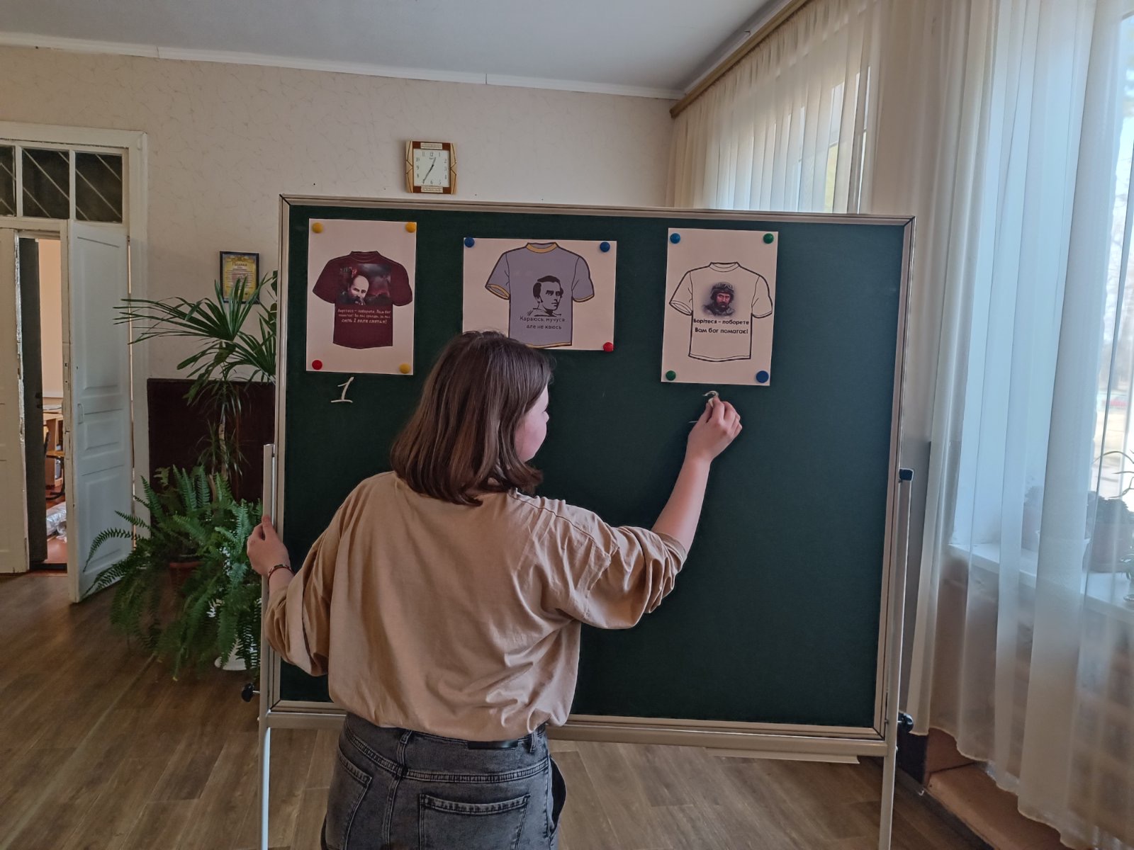 Учора день був без повітряних тривог, усі уроки проведені так, як планувала. Із незвичайного - відчуття учительського щастя, яке подарували дев'ятикласники та дев'ятикласниці. За методикою ігрового проєктування всі присутні об'єднались у 2 команди відповідно до тієї теми проєкту, яка зацікавила. Одна команда створювала проєкт розумного дозвілля, а саме - розробляла фотоквест за творами з "Кобзаря" для дітей з інших класів. Друга група обрала дизайнерський проєкт, розробляла ескіз футболки до бренду "Тарас Шевченко", вирішувала, чи всі представлені ескізи будуть конкурентоспроможні. Для цього провели 3 види відбору: організували обговорення у своїй групі, провели опитування-голосування серед учнів школи,  залучили ще й випускницю школи Ланову Дарину, і директорку закладу Наталію Анатоліївну, і заступницю з виховної роботи Ольгу Валеріївну, і психологиню Дарину Павленко, і навіть маленьку Кіру, яка ще лише готується ходити до першого класу.  Оскільки кількість голосів до двох ескізів була однаковою, то учасники групи соціологів організували голосування в команді, що готувала фотоквест. Бурхлива діяльність, самостійні рішення, організованість і дружнє ставлення одне до одного - це окрилює вчителя, хочеться бачити такими своїх учнів завжди. Але саме ігрове проєктування дає найбільше можливостей виявляти якості, необхідні успішній людині ХХІ століття.