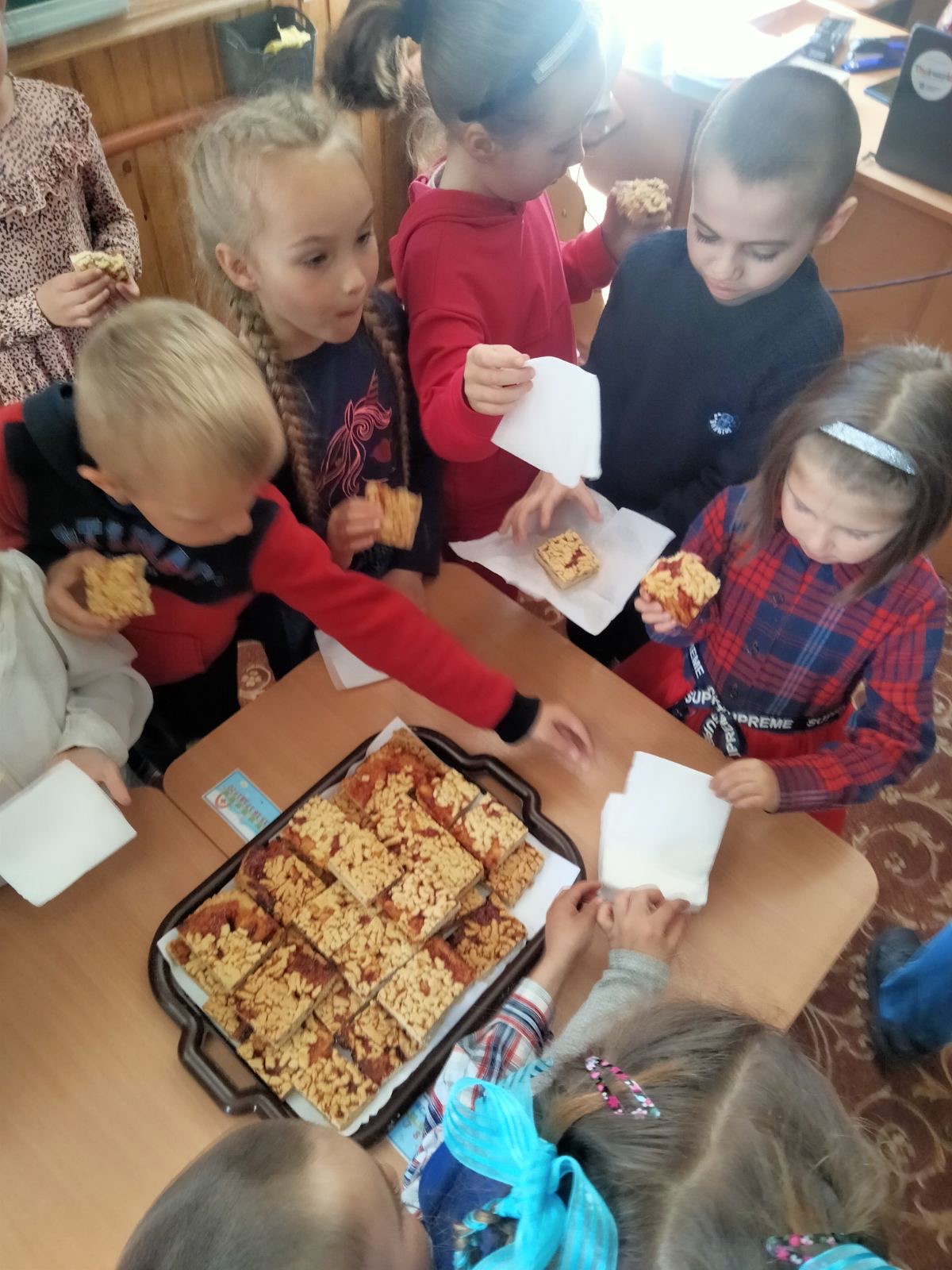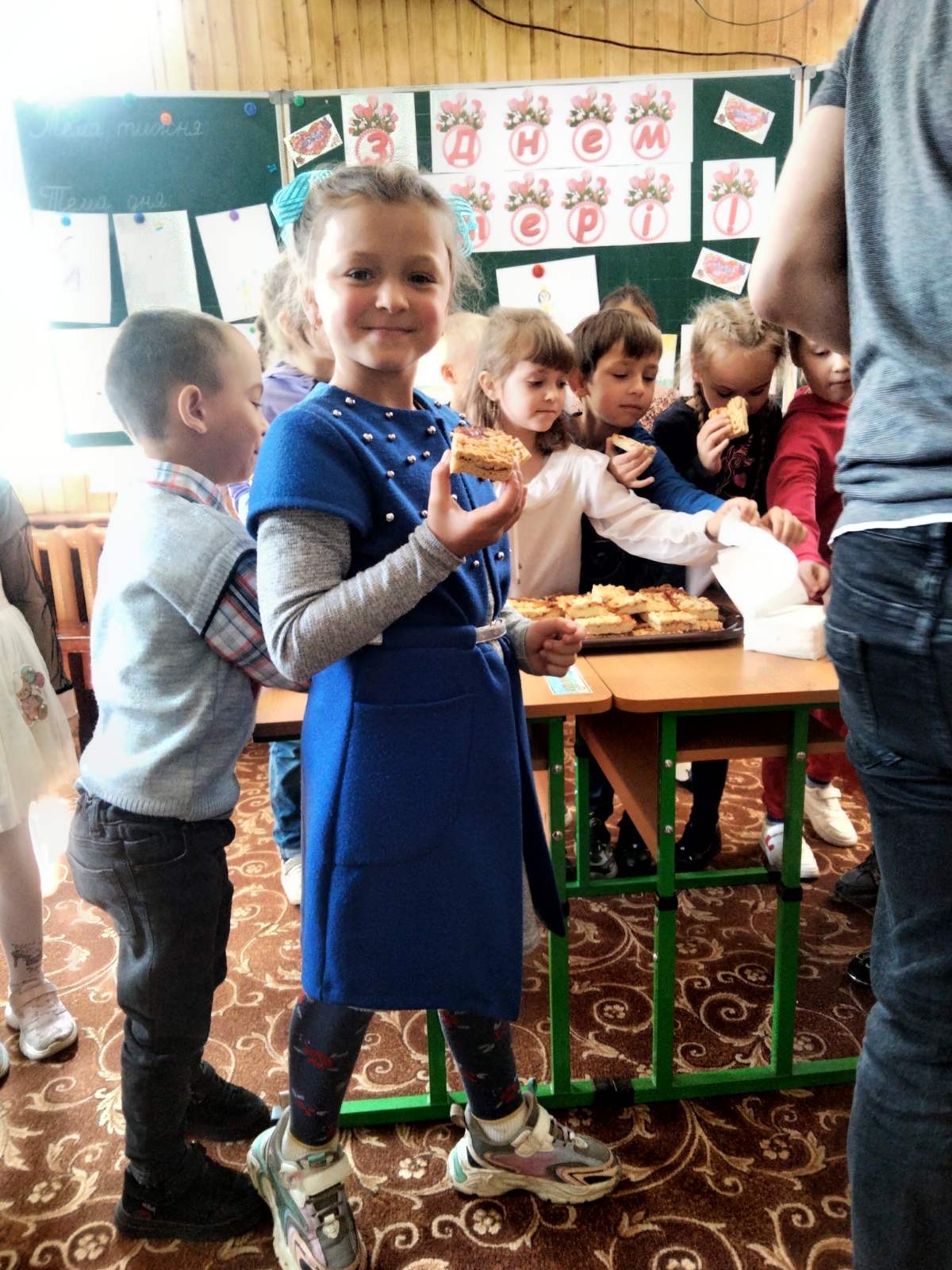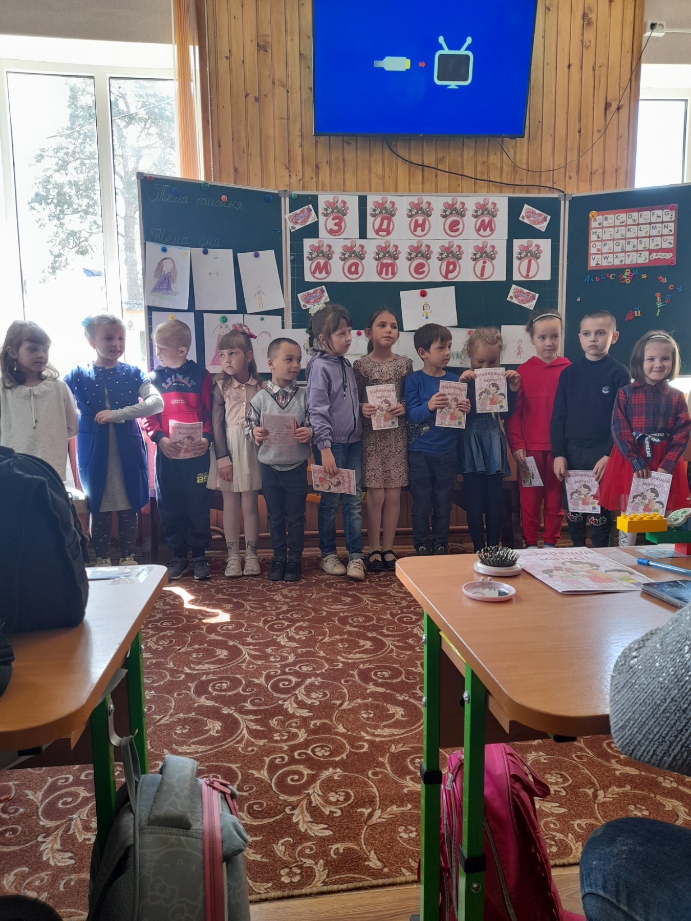 Учні першого класу привітали своїх мам зі святом Матері, декламували вірші, виготовляли листівки та малювали малюнки. А на завершення свята пригощали пирогом, який приготувати власноруч, разом з класним керівником Шостак О. В.