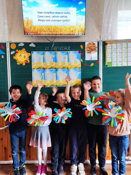 В усьому світі Міжнародний день миру традиційно відзначають 21 вересня. З метою розширення знань учнів про важливість миру на землі, виховання патріотизму, любові до своєї держави у нашому закладі освіти в цей день пройшли виховні офлайн та онлай заходи. Класні керівники на виховних годинах розповідали про історію запровадження дня миру. Класоводи виготовляли з учнями аплікації, учитель української мови Лариса ІВАНЬКО писала з учнями есе.