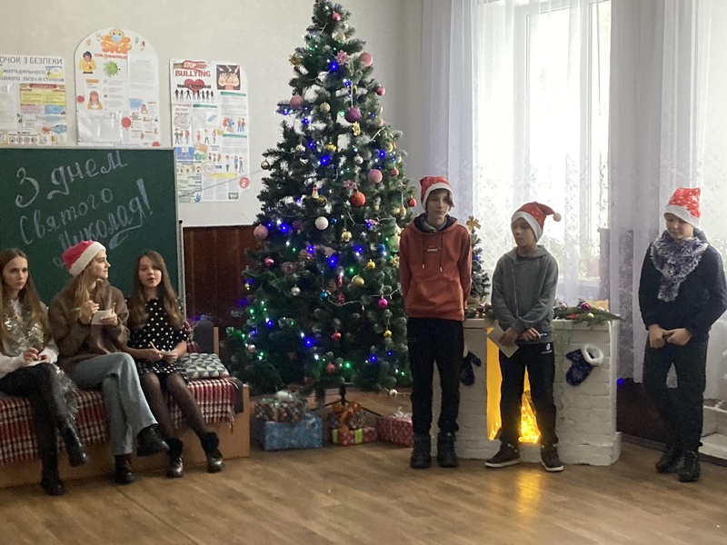 Старшокласники у своєму виступі відзначили важливість роботи волонтерів, подякували ЗСУ за їхню мужність, стійкість, відданість українському народові, та змогу навчатися у стінах рідної школи, а до здобувачів освіти 1-4 класів завітав сам святий Миколай, привітав малечу подарунками, а вони йому за це віддячили своїми неймовірними виступами. Окрасою свята стала придбана цьогоріч штучна красуня - ялинка, та власноруч створений камін, які додали ще більшої атмосфери зимових свят.